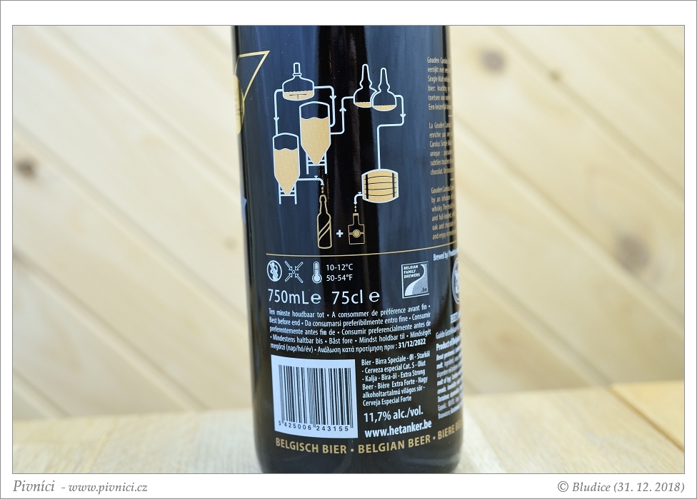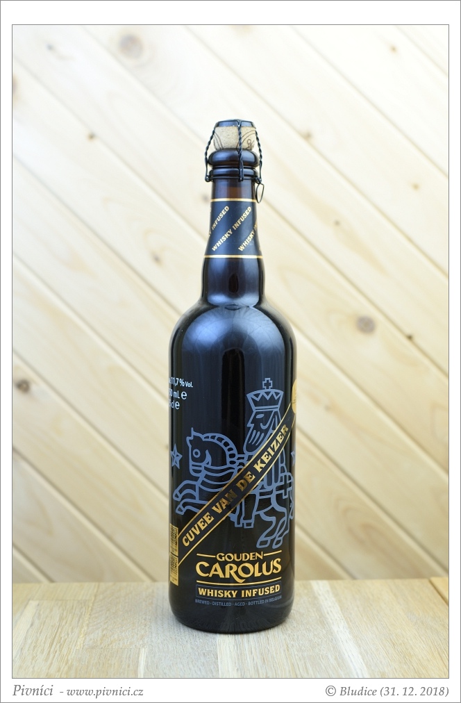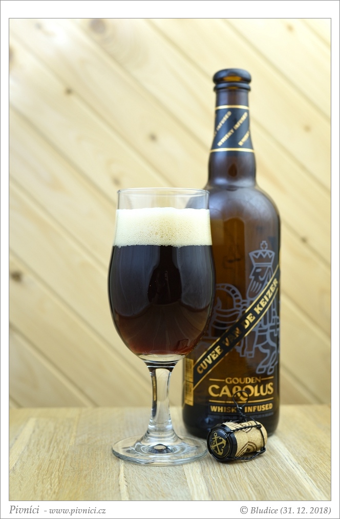 Složení podrobně: dozráváno s whisky Gouden Carolus Single Malt (destilovaná ze sladu z Gouden Carolus Tripel a dozrávaná v bourbonových sudech)