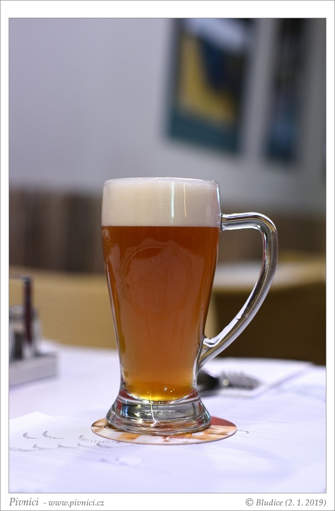Tmavě zlatá barva, středně zakalené. Pěkná světlá pěna, dobře drží, hezky kroužkuje.Vůně (1,5 - nedobré):