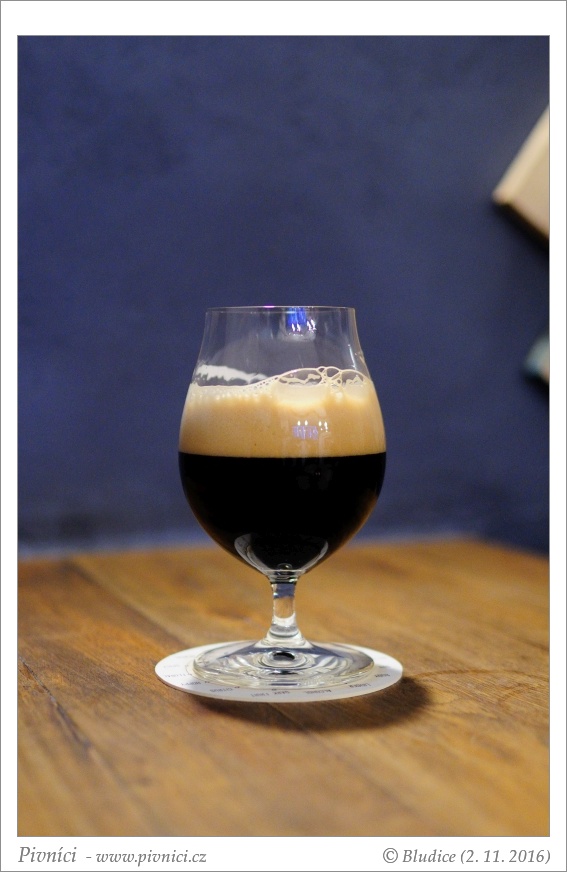 Barva velmi tmavá, téměř černá. Pěkná hustá stabilní pěna béžové barvy.Vůně (3 - dobré):