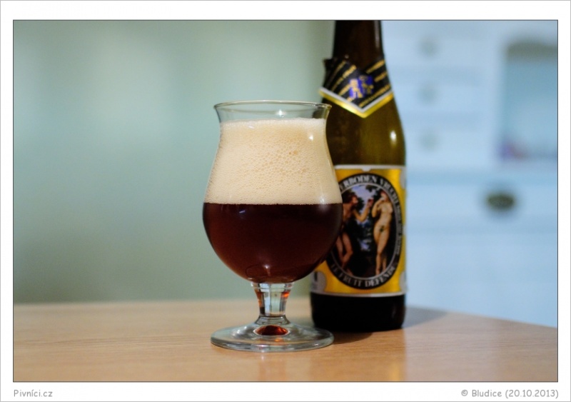 Tmavě měděná barva, čiré, hezká vysoká světle okrová pěna, dobře drží.Vůně (4 - výborné):