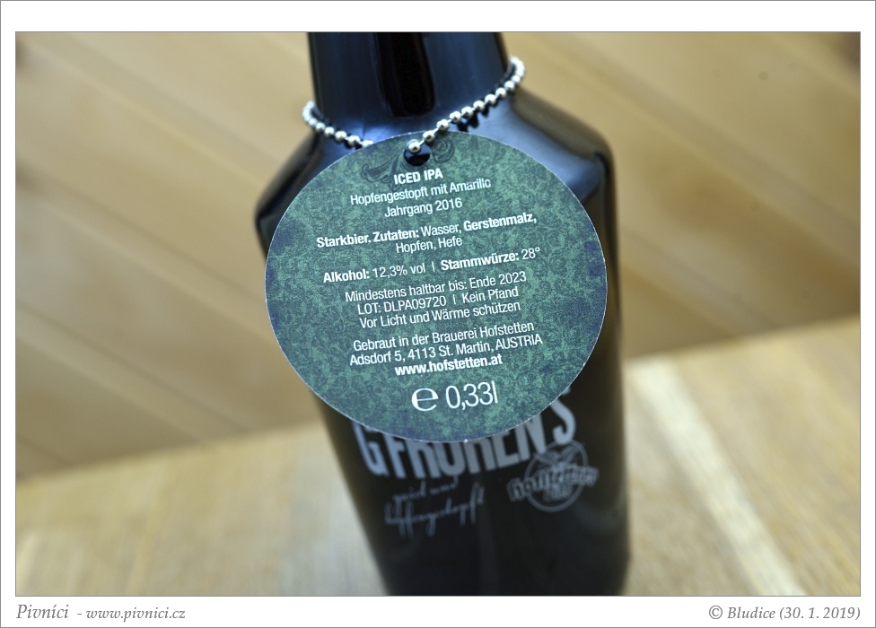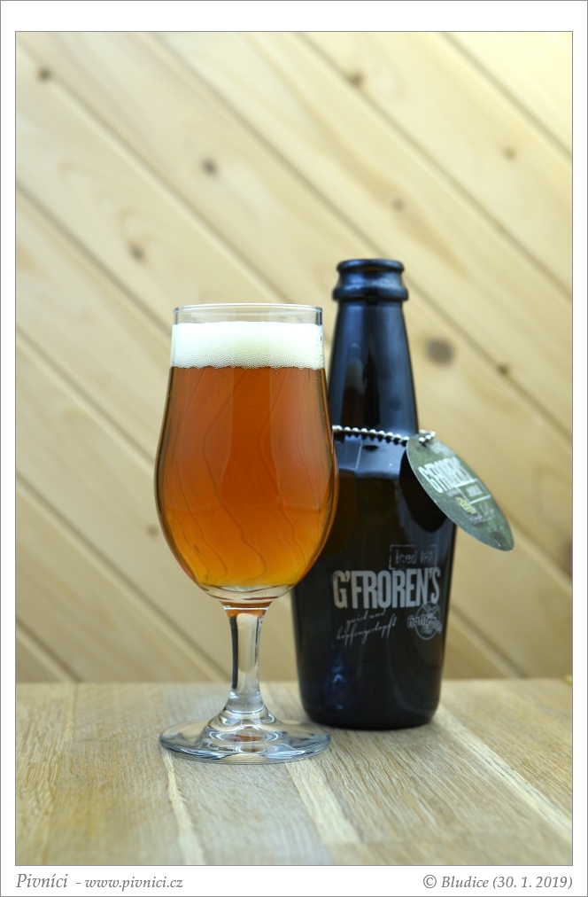 Zlatá barva, čiré. Slušná světlá pěna, celkem drží.Vůně (3,5 - velmi dobré):