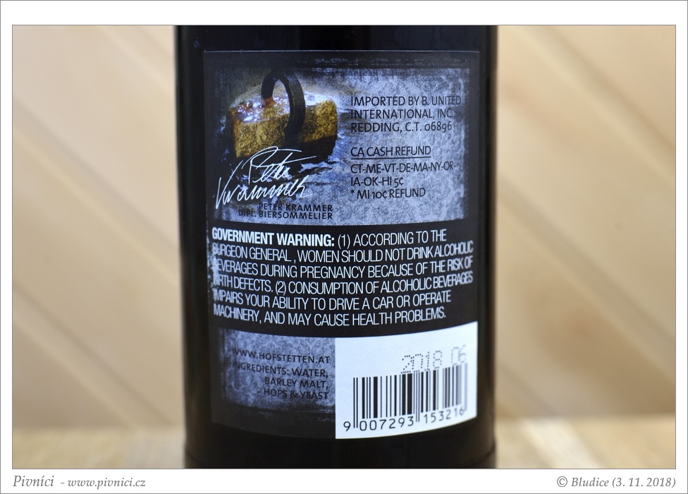 Chutné tmavé silné pivo, velmi dobře se popíjí.Minimální trvanlivost: 30. června 2018