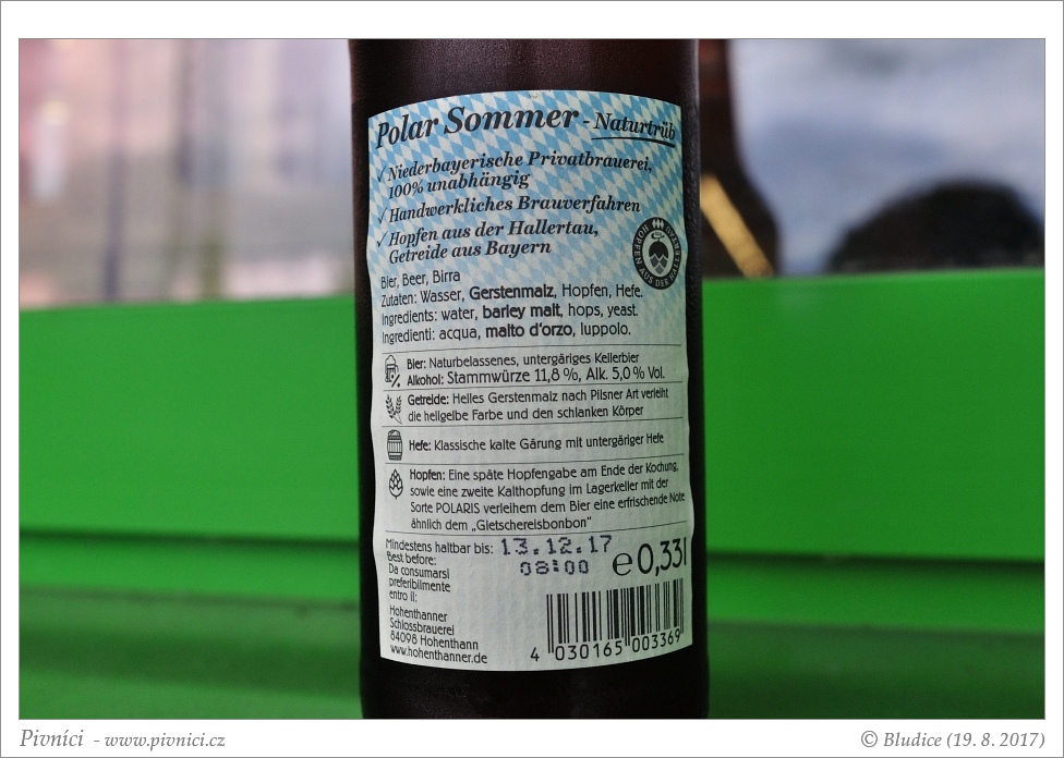 Barva světle zlatá, zakalené. Pěkná hustá stabilní pěna.Vůně (3,5 - velmi dobré):