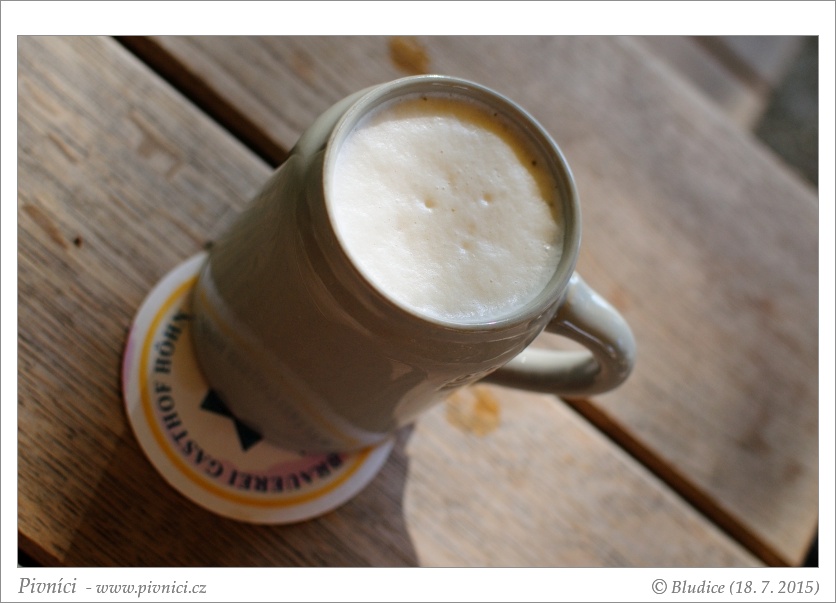 Tmavší zlatá až měděná barva, středně zakalené, slušná bílá pěna.Vůně (3 - dobré):