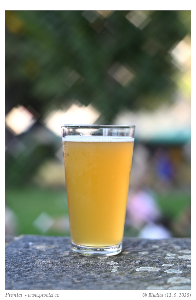 Zlatá barva, více zakalené. Slušná světlá pěna, dobře drží.Vůně (1,5 - nedobré):