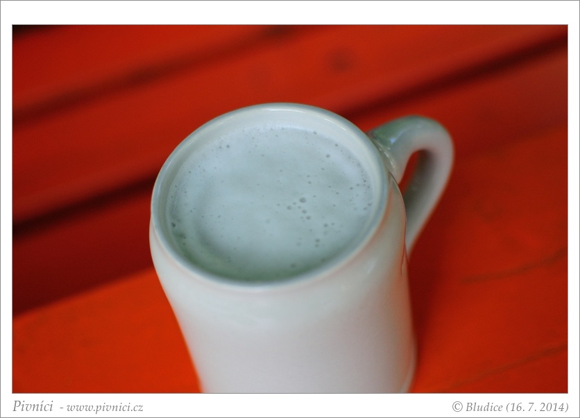 Zřejmě světle zlatá barva, čiré, slušná nižší světlá pěna, celkem drží.Vůně (3,5 - velmi dobré):