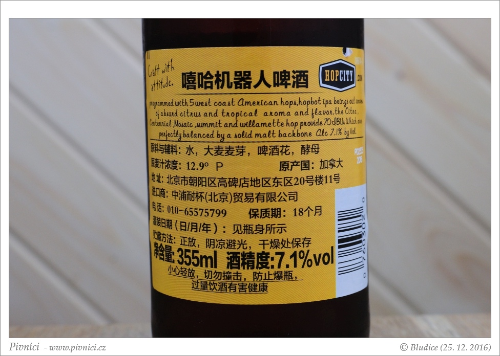 Chutné, pěkně chmelené pivo. Výborně se pije.Lahvováno: 25. května 2016