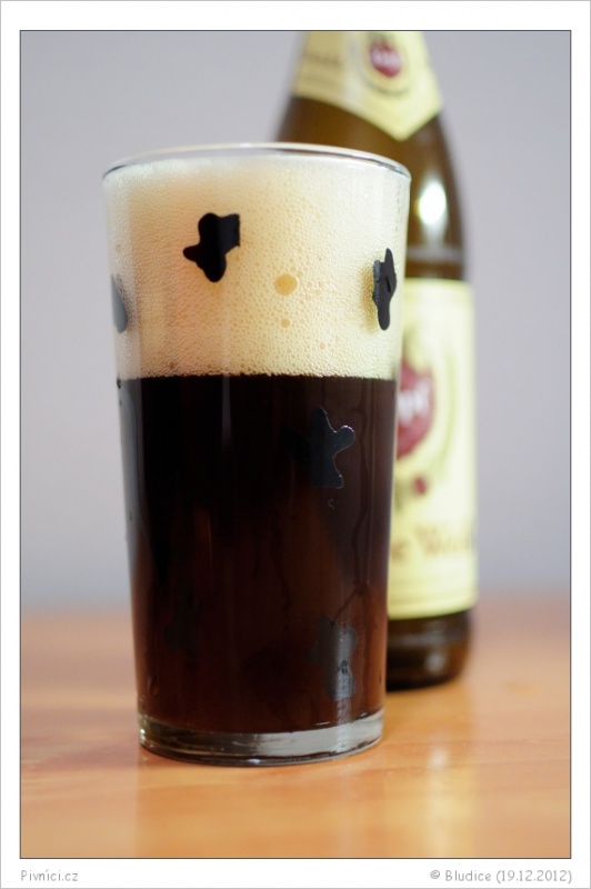 Barva hnědá, zakalené. Pěkná hustá stabilní pěna světle okrové barvy.Vůně (4 - výborné):