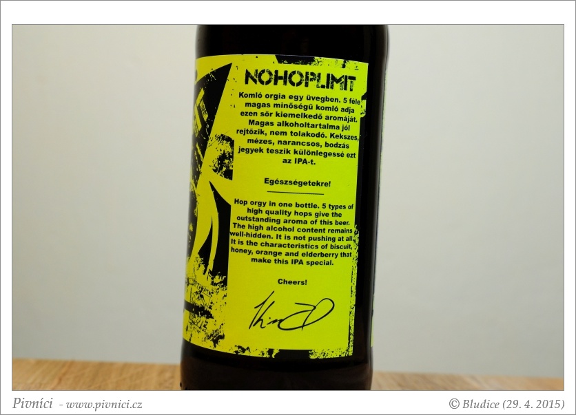Fajn výrazně hořká, trochu osobitá IPA, dobře se popíjí. Minimální trvanlivost: 24. června 2015