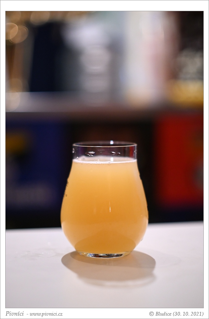 Zlatá až lehce oranžová barva, více zakalené. Nižší světlá pěna, průměrně drží.Vůně (3,5 - velmi dobré):