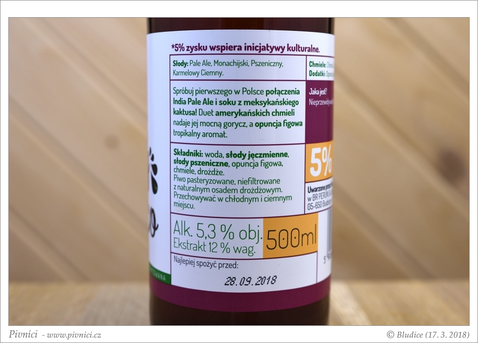 Vůně sladová, toustová, kořenitá, lehce citrusová (grepy), s nádechem opuncie.Chuť (2,5 - lehce nadprůměr):