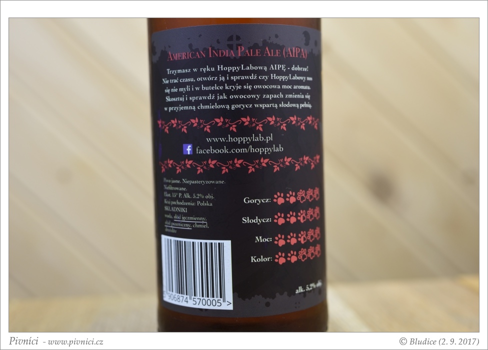 Chutné a svěží pivo, velmi dobře se popíjí.Minimální trvanlivost: 21. října 2017