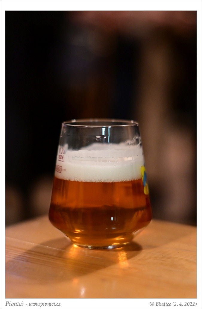 Zlatá barva, velmi lehce zakalené. Pěkná světlá pěna, dobře drží, pěkně kroužkuje.Vůně (2,5 - lehce nadprůměr):