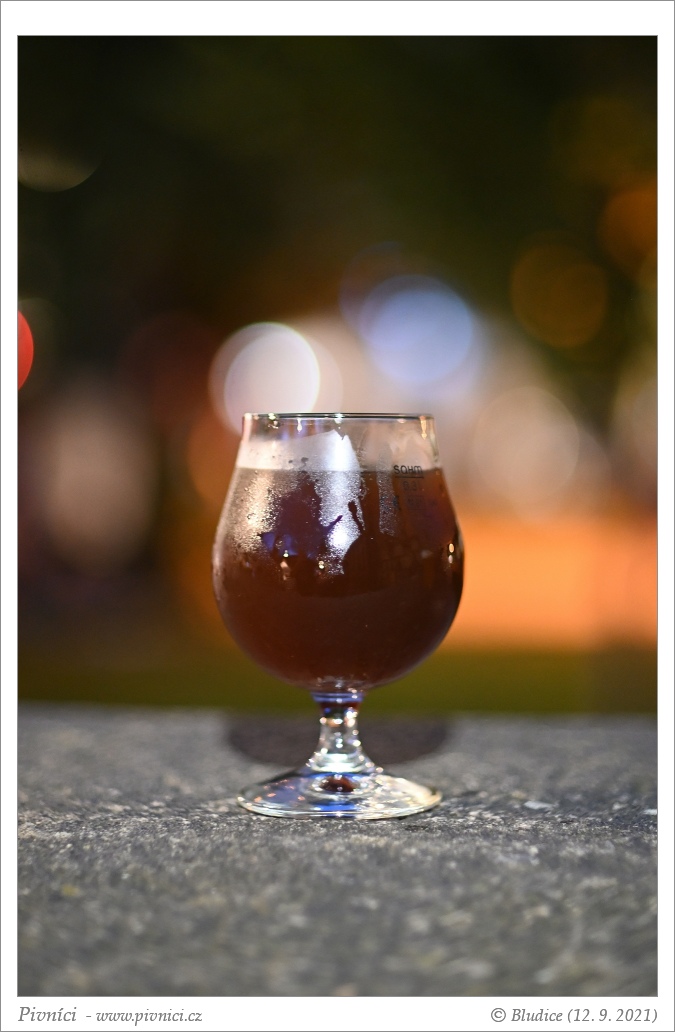 Tmavě mahagonová barva, lehce zakalené. Nízká světlá pěna, brzy mizí.Vůně (3 - dobré):