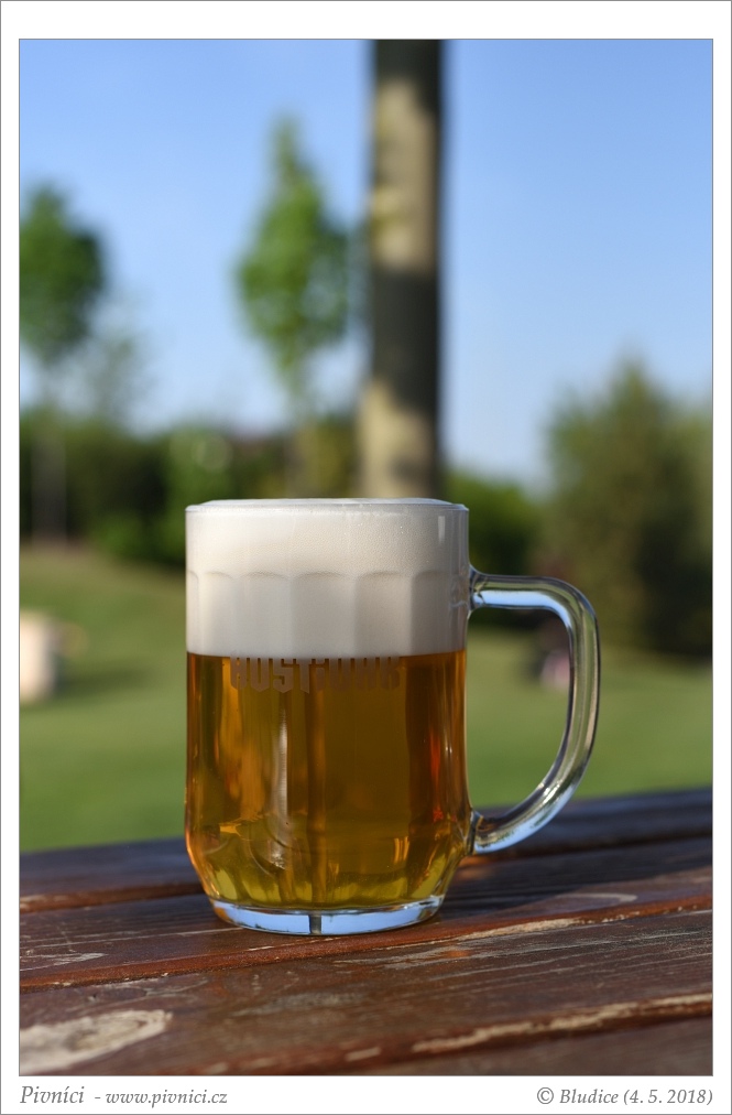 Zlatá barva, čiré. Pěkná světlá pěna, dobře drží.Vůně (3,5 - velmi dobré):