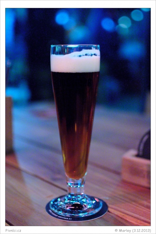 Tmavší měděná barva, čiré, pěkná světlá pěna s okrovým nádechem, dobře drží.Vůně (4 - výborné):