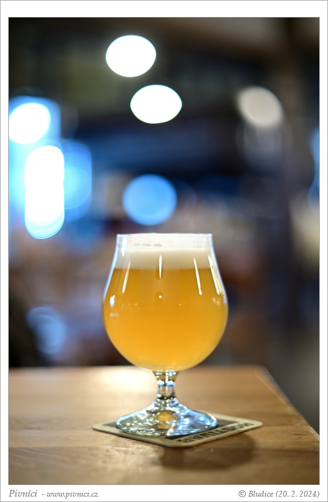 Barva zlatá, zakalené. Pěkná hustá stabilní pěna.Vůně (2,5 - lehce nadprůměr):