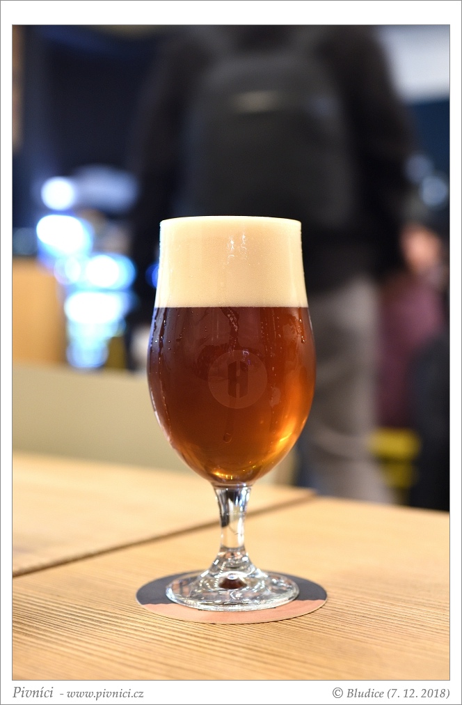 Tmavší měděná barva, téměř čiré. Pěkná světlá pěna s okrovým nádechem, dobře drží.Vůně (3 - dobré):