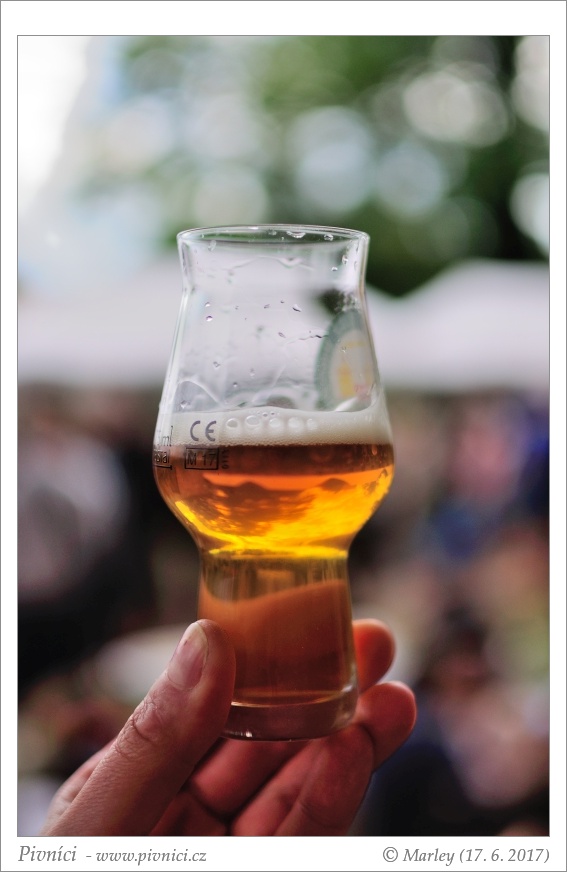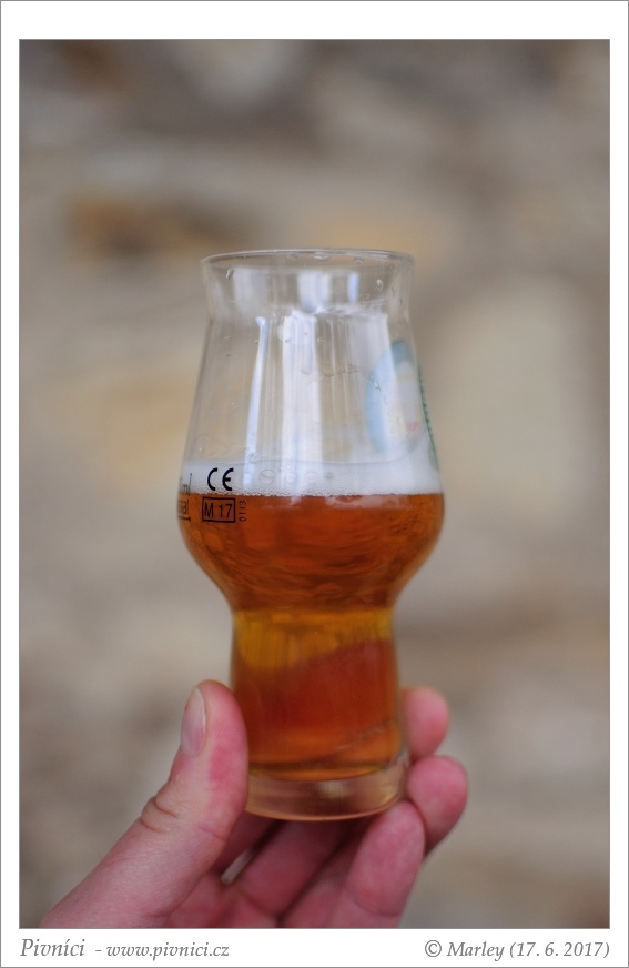 Zlatá barva, téměř čiré, pěkná světlá pěna, dobře drží.Vůně (3,5 - velmi dobré):