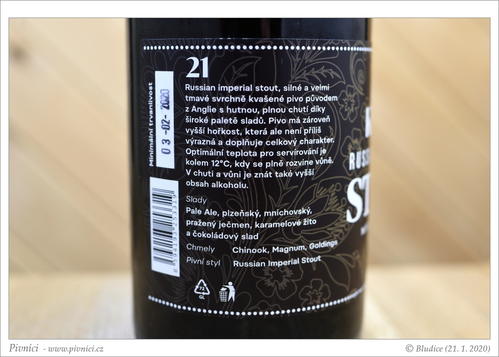 Fajn silný stout, velmi dobře se popíjí.Minimální trvanlivost: 3. února 2020