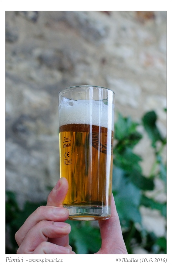 Zlatá barva, čiré, pěkná světlá pěna, dobře drží, hezky kroužkuje.Vůně (1,5 - nedobré):