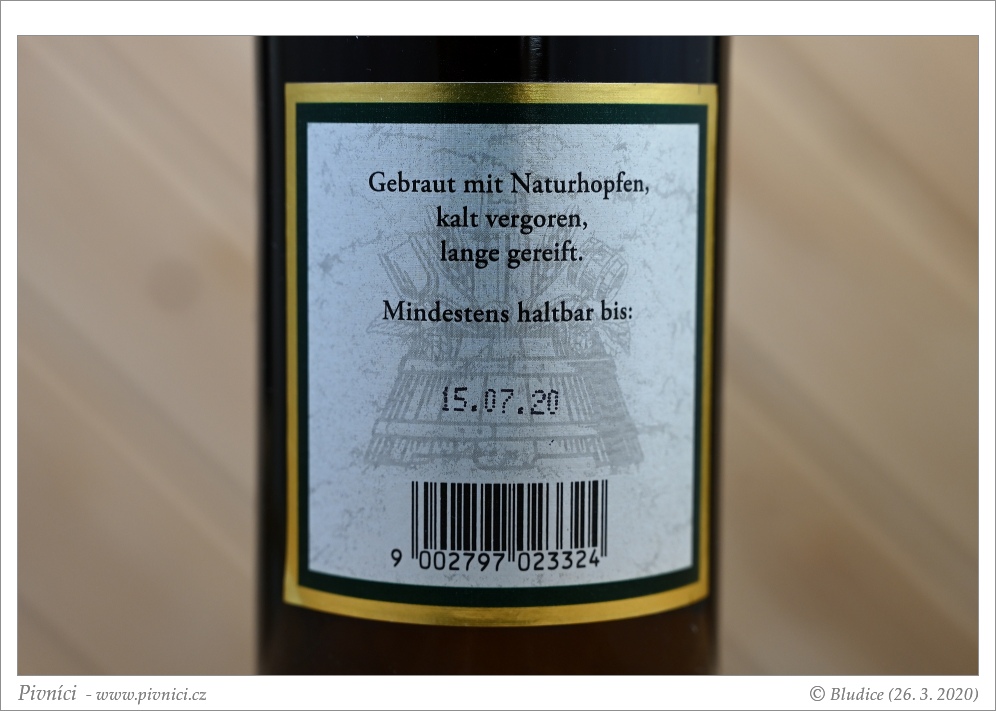 Nijak úžasné pivo, ale pít se celkem dá.Minimální trvanlivost: 15. července 2020