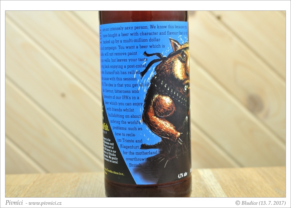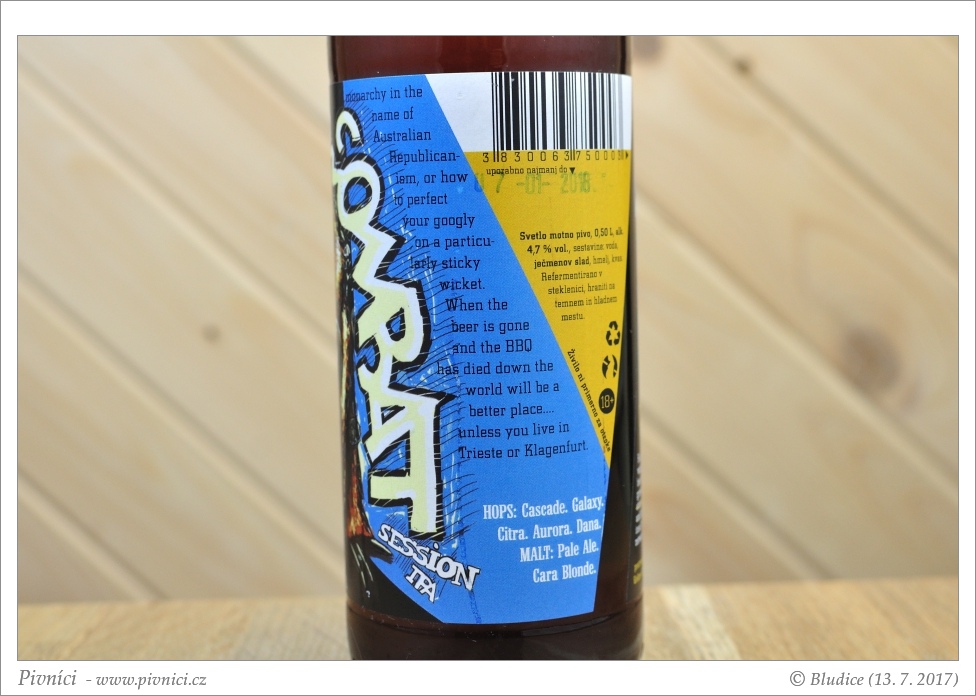 Ne úplně vyvážená IPA, trochu více chmelově nakyslá, ale celkem pitelná.Minimální trvanlivost: 7. ledna 2018