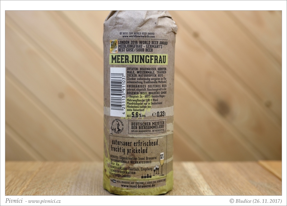 Příjemný a velmi pitelný kyseláč, zřejmě něco jako berliner weisse.Minimální trvanlivost: 6. června 2019
