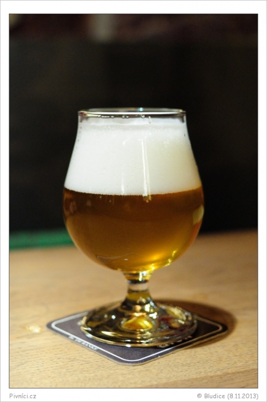 Zlatá barva, téměř čiré, hezká bílá pěna.Vůně (4,5 - úchvatné):