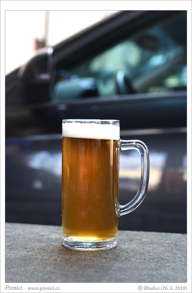 Tmavší zlatá barva, téměř čiré. Pěkná světlá pěna, dobře drží.Vůně (2 - průměr):