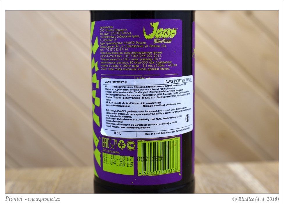 Fajn kokosový porter, dobře se popíjí.Lahvováno: 31. října 2017