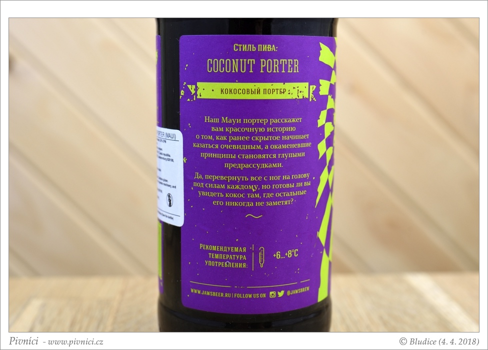 Výrazný a velmi dobře se popíjející kokosový porter.Vzhled (3 - dobré):