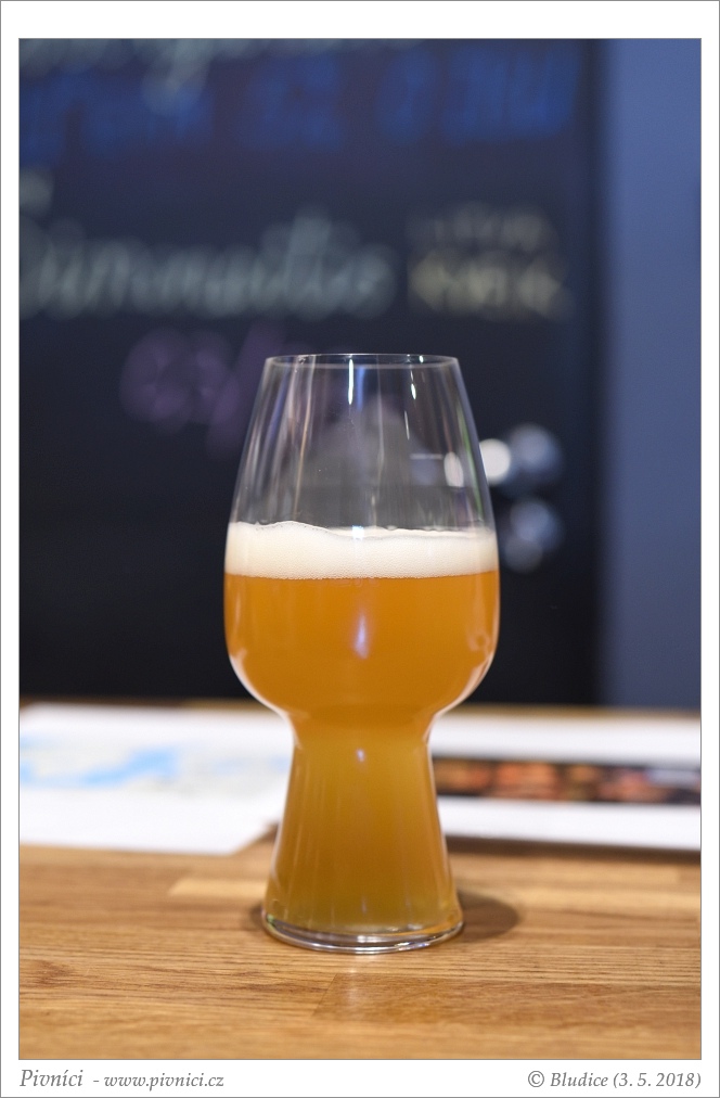 Tmavší zlatá až oranžová barva, středně zakalené. Nižší světlá pěna, moc nedrží.Vůně (3,5 - velmi dobré):