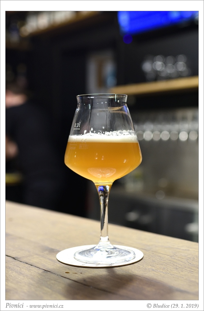 Zlatá barva, středně zakalené. Pěkná světlá pěna, slušně drží.Vůně (2,5 - lehce nadprůměr):