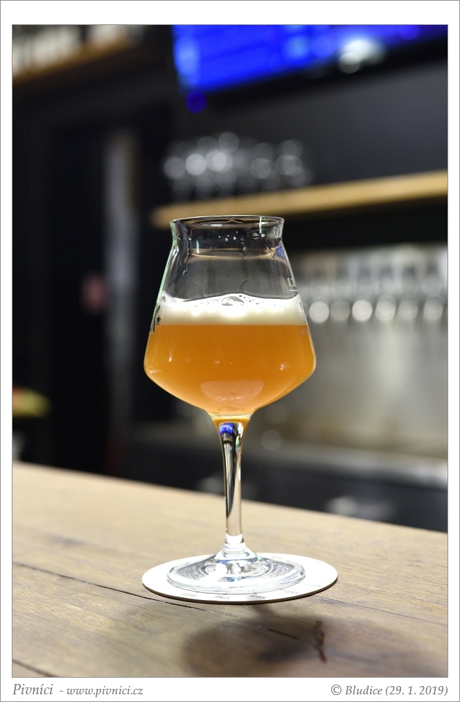Tmavší zlatá barva s oranžovým nádechem. Pěkná světlá pěna, vcelku dobře drží.Vůně (2,5 - lehce nadprůměr):