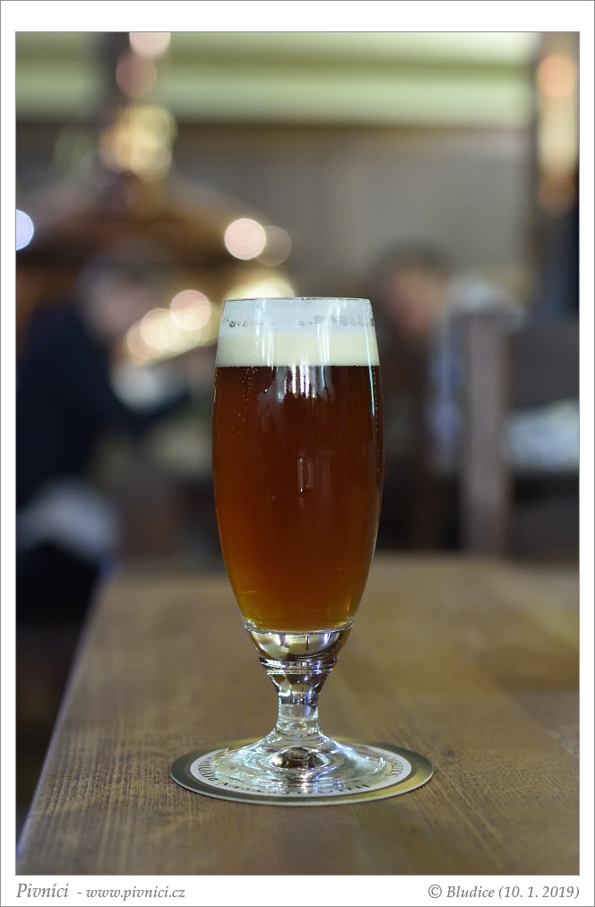 Barva tmavě měděná, zakalené. Pěkná hustá poměrně stabilní pěna.Vůně (2,5 - lehce nadprůměr):