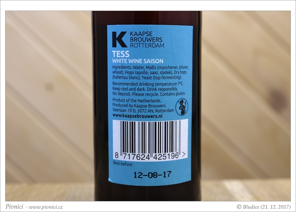 Fajn kořeněnější saison, velmi dobře se popíjí.Minimální trvanlivost: 12. srpna 2017