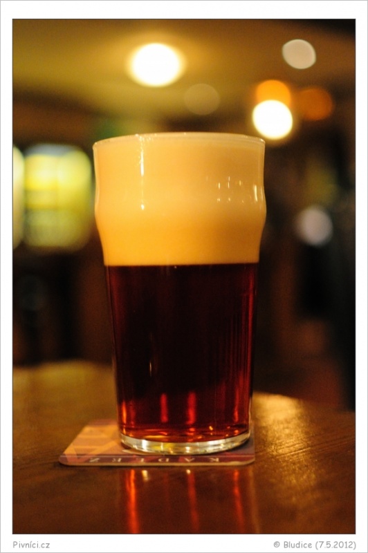 Barva tmavě jantarová, čiré, na počátku pěna až téměř ode dna sklenice a postupem času vystoupala až nahoru. Hezká krémová, kroužkuje.Vůně (3,5 - velmi dobré):
