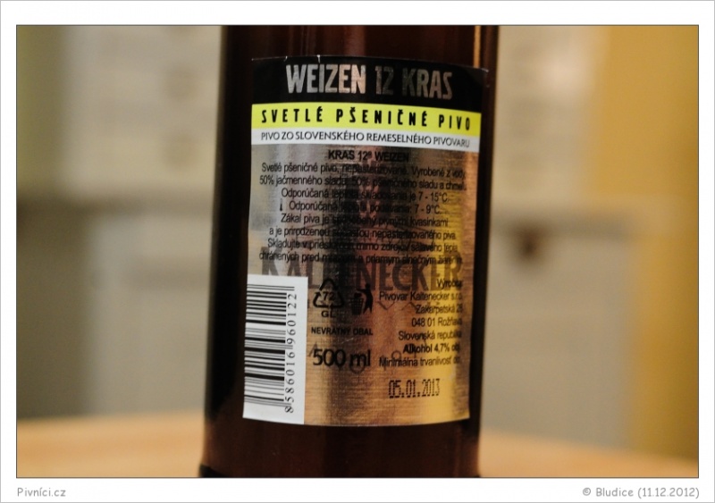 Světle zlatá barva, středně zakalené, pěkná bílá pěna, dobře drží.Vůně (3,5 - velmi dobré):