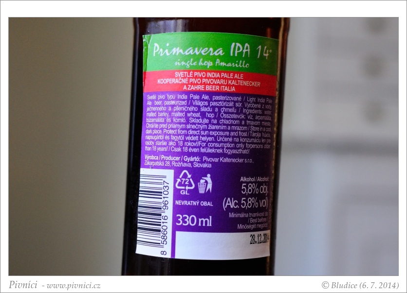 … příjemné a pije se dobře. Druhé pivo je Primavera IPA, při jehož stvoření zase přiložili ruku k dílu italští …
