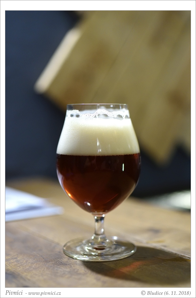 Temně měděná barva, čiré. Pěkná světlá pěna, dobře drží.Vůně (3,5 - velmi dobré):