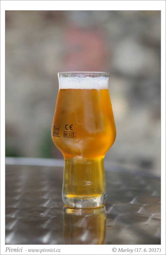 Světle zlatá barva, lehce zakalené, pěkná světlá pěna, dobře drží.Vůně (3 - dobré):