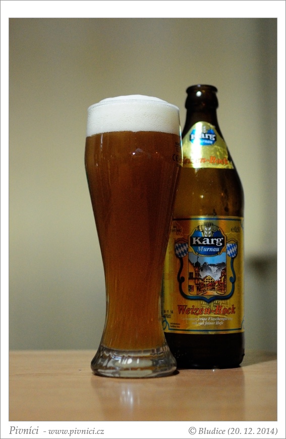 Příjemný a výrazný weizenbock, krásně uzrál. Vůbec nevadilo, že jsme ho zapomněli ve sklepě o dva měsíce déle, než jsme chtěli, ba naopak.Vzhled (4 - výborné):