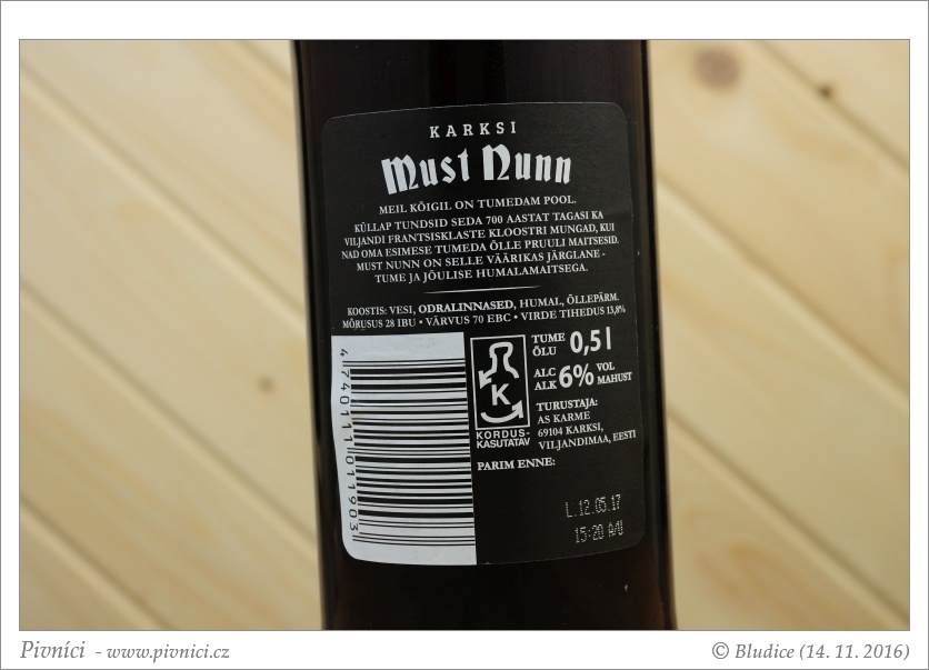 Trochu prázdnější, ale celkem dobře pitelný tmavý ležák.Minimální trvanlivost: 12. května 2017