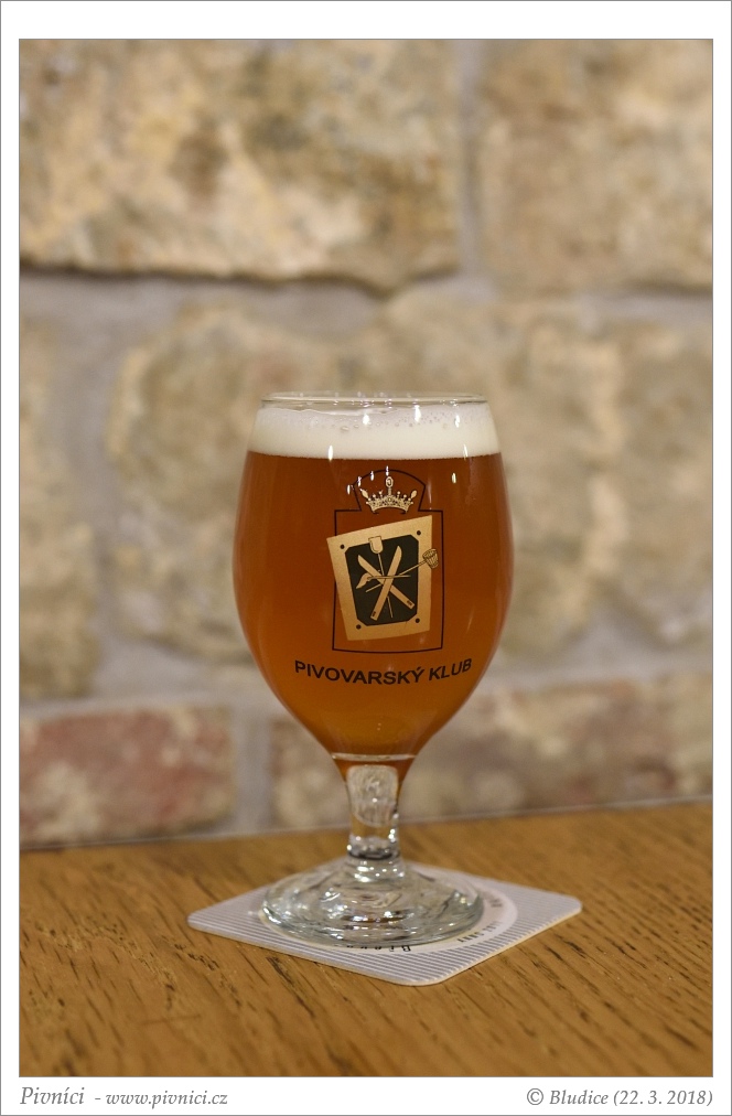 Temně zlatá až měděná barva, lehce až středně zakalené. Pěkná světlá pěna, slušně drží.Vůně (2,5 - lehce nadprůměr):