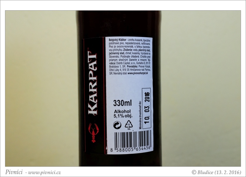 Trochu nevyvážené pivo, ne úplně harmonické, ale dá se.Minimální trvanlivost: 10. března 2016