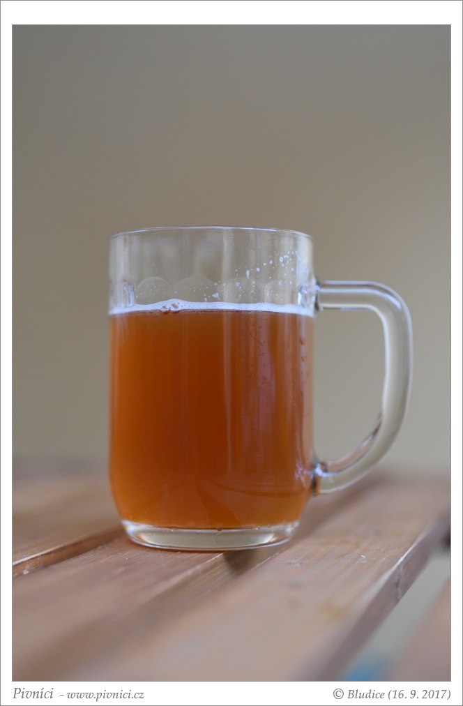 Tmavě měděná barva, středně zakalené, nízká světlá pěna, brzy mizí.Vůně (3 - dobré):