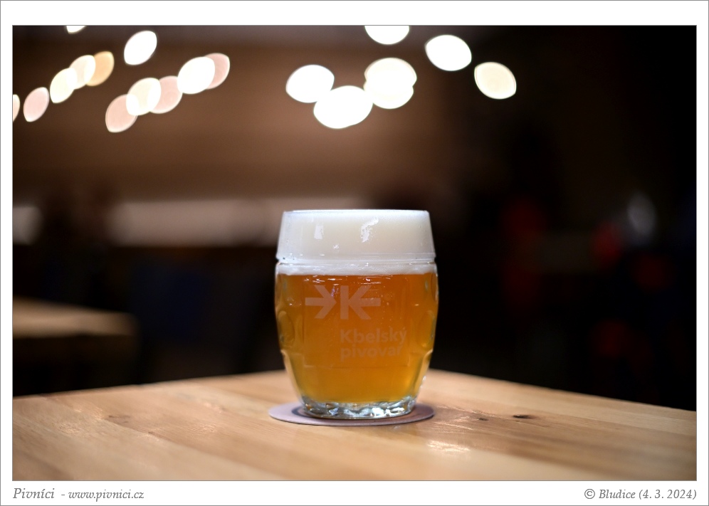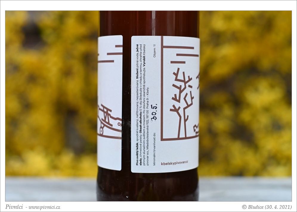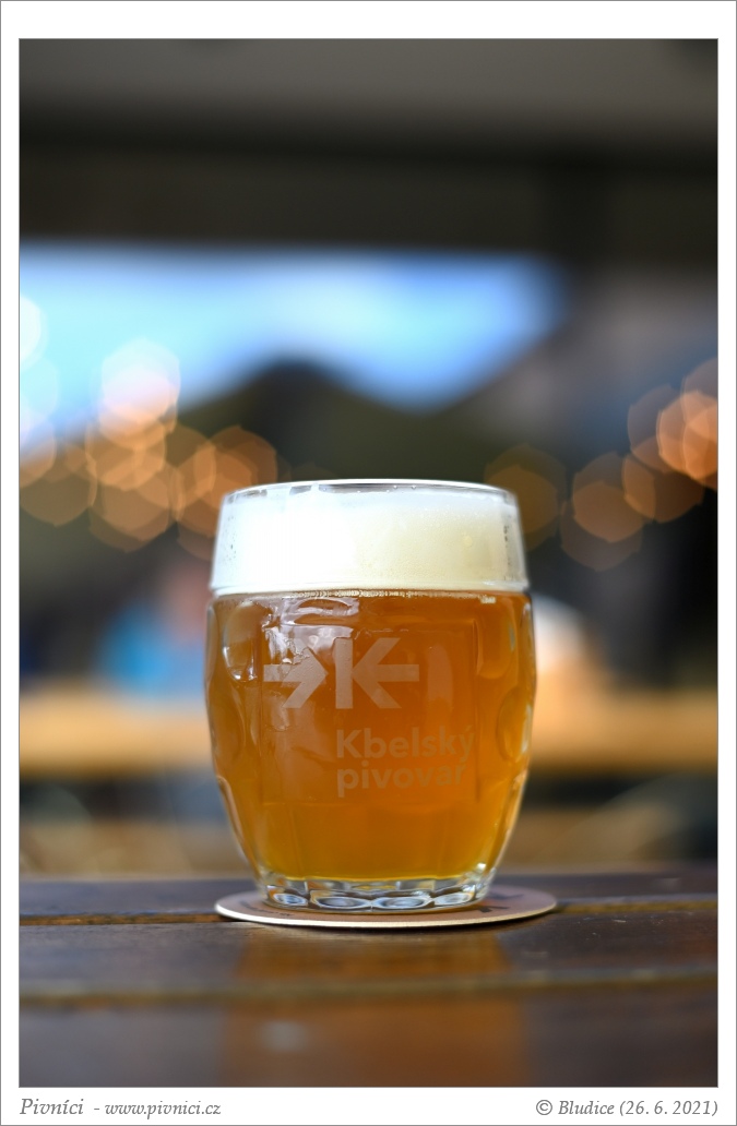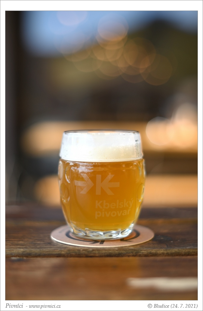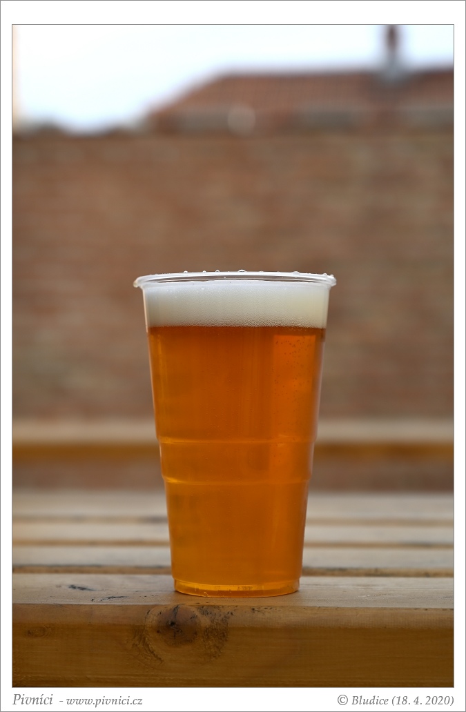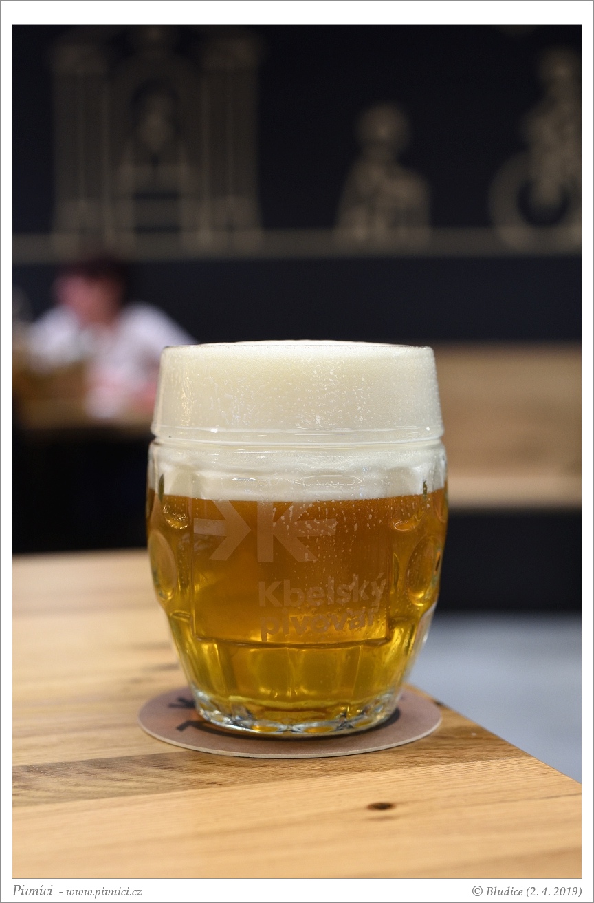 Zlatá barva, velmi lehce zakalené. Pěkná světlá pěna, dobře drží.