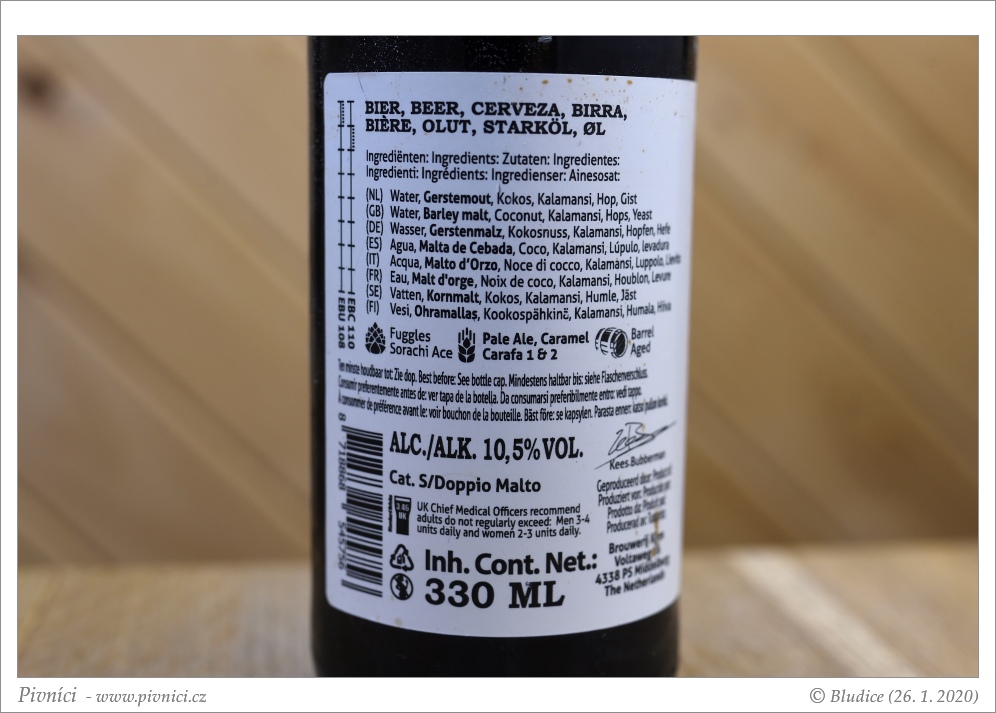 Výborné pivo se zajímavou kombinací chuti hořké čokolády, kalamansi, kokosu a bourbonu. Skvěle se popíjí.Minimální trvanlivost: 31. března 2023