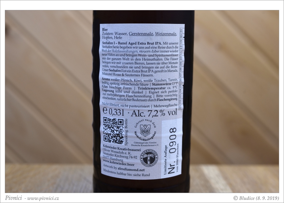 Zlatá barva, lehce zakalené. Slušná světlá pěna, celkem drží.Vůně (4 - výborné):